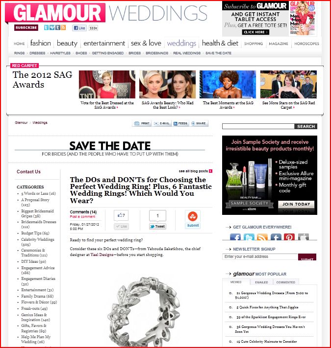 Glamour features tips on how to pick wedding bands by Yael Designs Published February 20, 2012 at 675 × 711 in Clients in the news Glamour features tips on how to pick wedding bands by Yael Designs