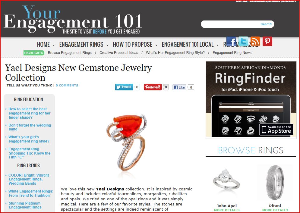 Engagement 101 features Lyra jewelry collection by Yael Designs. Published September 14, 2012 at 995 × 707 in Clients in the news Engagement 101 features Lyra jewelry collection by Yael Designs. August 2012.
