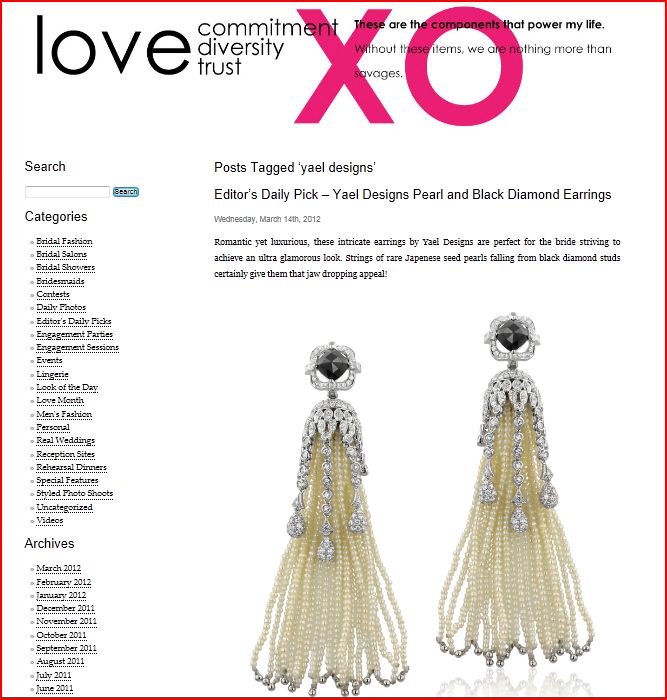 Grace Ormonde Wedding Style highlights Yael Designs earrings Published June 8, 2012 at 667 × 700 in Clients in the news Grace Ormonde Wedding Style highlights Yael Designs earrings