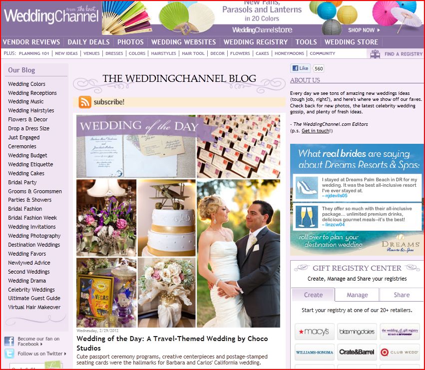 Choco Studio real wedding featured on WeddingChannel Published March 7, 2012 at 851 × 741 in Clients in the news Choco Studio real wedding featured on WeddingChannel