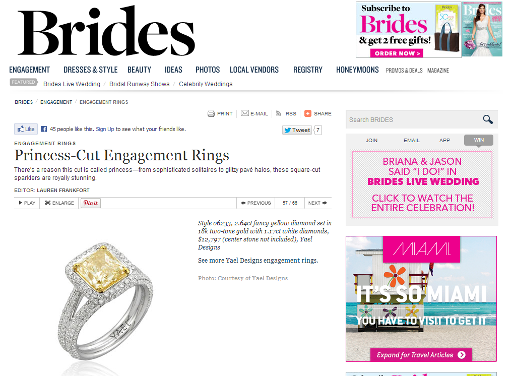 Brides features princess-cut engagement ring by Yael Designs Published April 29, 2013 at 1018 × 746 in Clients in the news Brides features princess-cut engagement rings by Yael Designs