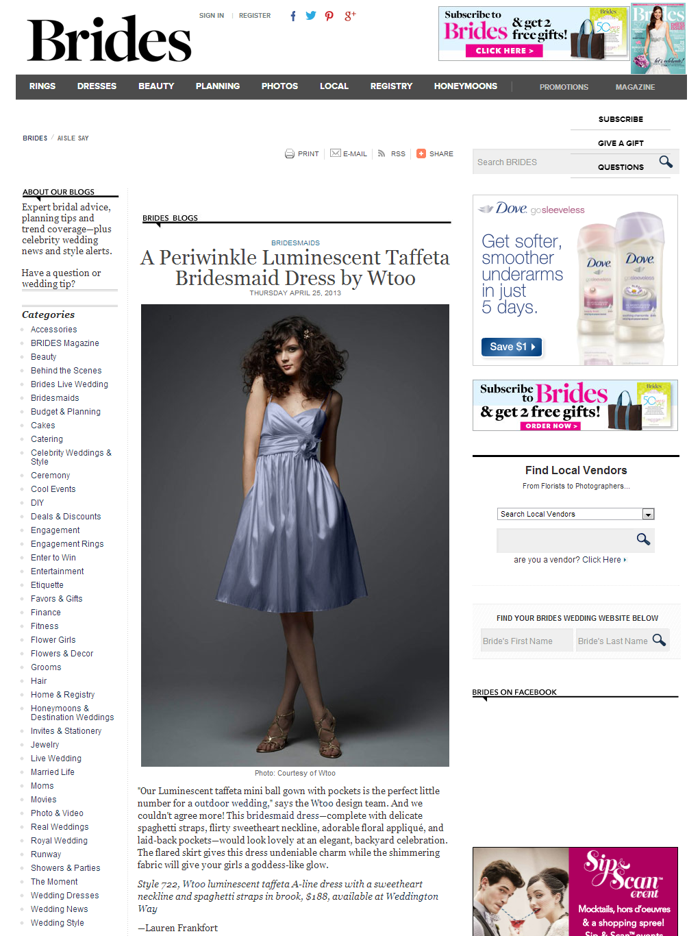 Brides features Wtoo bridesmaid dress from Weddington Way Published April 29, 2013 at 1022 × 1366 in Clients in the news Brides features Wtoo bridesmaid dress from Weddington Way. April 2013