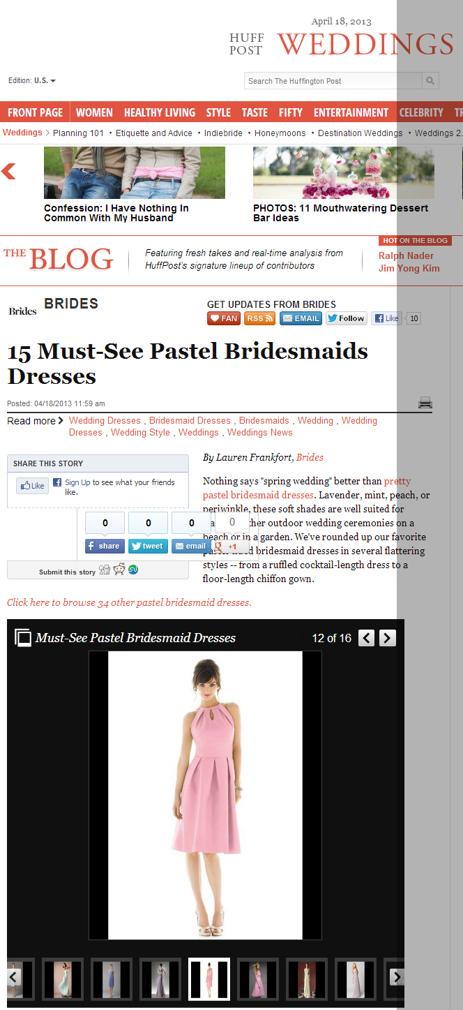 Huffington Post features pastel dresses by Weddington Way and Kirribilla Published April 29, 2013 at 664 × 1447 in Clients in the news Huffington Post features pastel dresses by Weddington Way and Kirribilla. April 2013