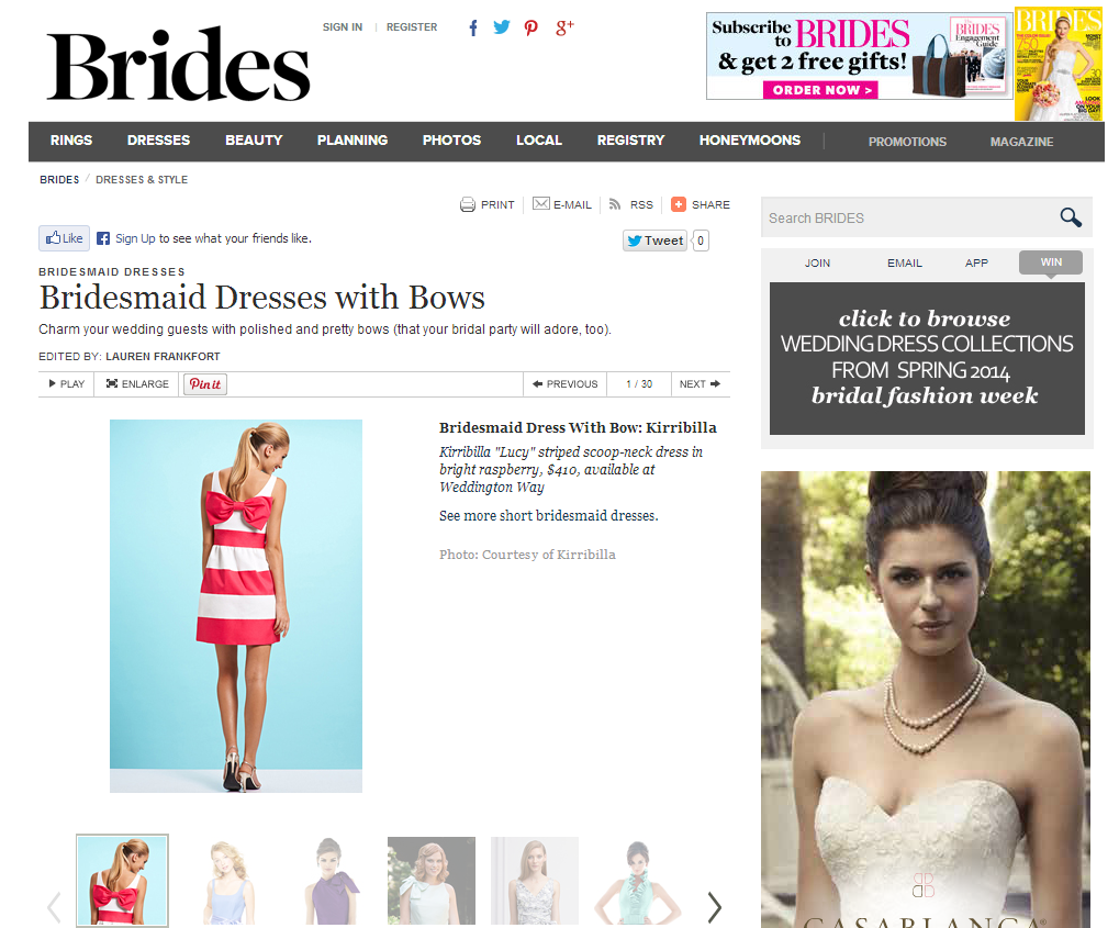 2013_5_brides Published June 3, 2013 at 701 × 873 in Clients in the news Brides features colorful, fun, and light-as-air bridesmaid dresses for summer by Weddington Way May 2013