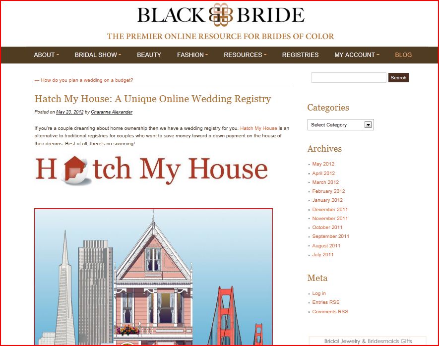 Black Bride features Hatch My House wedding registry Published June 8, 2012 at 885 × 698 in Clients in the news BlackBride.com features Hatch My House wedding registry