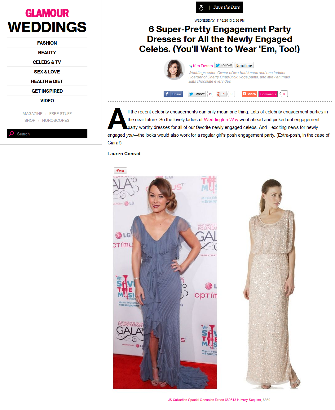 Glamour featured Weddington Way Published November 19, 2013 at 1081 × 1323 in Clients in the news Glamour featured engagement dresses from Weddington Way. November 2013