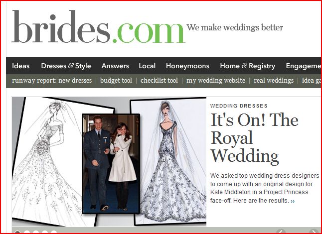 My favorite was Brides magazine, which was the best prepared with a great feature story with sketches of wedding dresses created by famous designers specifically for Kate to consider.