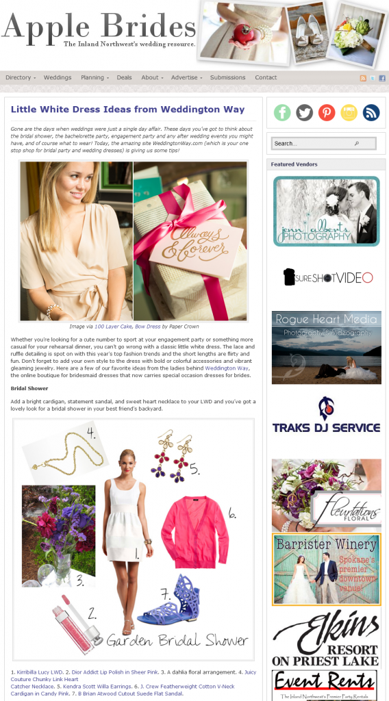 Apple Brides featured Weddington Way’s little white dress looks and Kirribilla dresses. September 2013